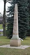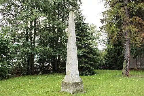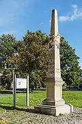 1736 | Nachbildung (1967) einer Kursächsische Distanzsäule von 1735/36. Diese wurde vom Kirchhainer Marktplatz 1887 auf den Schützenplatz versetzt. Der Originalschriftblock befindet sich seit 2017 in der Dauerausstellung im Schloss Doberlug.[7] | 09135052