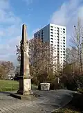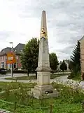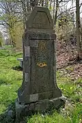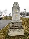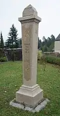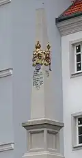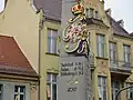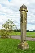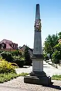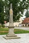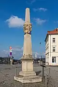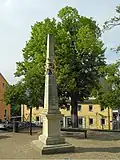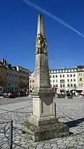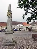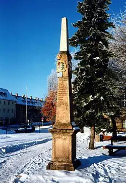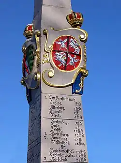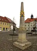 1731 | Nachbildung (2000) einer Kursächsische Distanzsäule von 1731 auf dem Markt von Senftenberg. Das originale Wappenstück steht im Kreismuseum Senftenberg.[7][9] ![]() |