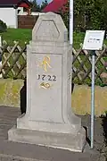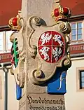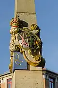 1730 | Nachbildung (1973) einer Kursächsischen Distanzsäule von 1730 auf dem Markt in Hoyerswerda. Der Originalschriftblock und das originale Wappenstück steht im Eingangsbereich zum Museum im Schloss Hoyerswerda.[7]![]() |