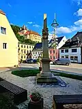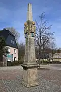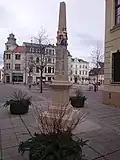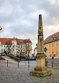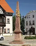 1730 | Nachbildung (2003) einer Kursächsischen Distanzsäule von 1730 am Roßmarkt in Bad Liebenwerda.[5][6][7] |