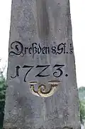 1728 | Nachbildung (2012) einer Kursächsischen Distanzsäule von 1728 auf dem Markt von Radeberg.[16] | 09304219