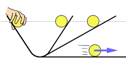 Ausgehend von der Bewegung des Pendels führte Galilei als Versuchsanordnung zur Untersuchung der Fallgesetze die schiefe Ebene mit anschließender horizontaler Bahn ein. Die schiefe Ebene diente ihm zur „Verdünnung“ der Schwerkraft[4], weil die Messung der Fallgeschwindigkeit damals noch zu ungenau war. Galilei benutzte in diesen Experimenten Kugeln aus verschiedenen Materialien. Das erlaubte es erstmals, den langsam anrollenden Kugeln eine bestimmte Geschwindigkeit zu erteilen und diese zu messen. So entdeckte er die Beschleunigung und die Tatsache, dass diese etwas von der Geschwindigkeit völlig verschiedenes ist. Dies wiederum ließ sich am besten in der Formelsprache der Mathematik darstellen. Am deutlichsten formulierte Galilei diese neue Einstellung zur Physik 1623 in Il Saggiatore: