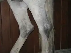 - Kurbengalle: Anschwellung der gemeinsamen Sehnenscheide von Musculus flexor digitorum lateralis und Musculus tibialis caudalis