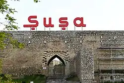 Die Mauern der Festung wurden mit vier Toren errichtet. Das Haupttor war nach Norden in Richtung der Stadt Gəncə (Gandscha) ausgerichtet und wurde daher Gandscha-Tor genannt. Schuschas innere Burg befand sich auf einem Gipfel in der Nähe des Gandscha-Tors.[2] Das Gandscha-Tor hat architektonische Bedeutung und ist Teil des 2021 verkündeten historischen und architektonischen Schutzgebietes von Şuşa.[3][4][5] Das Gandscha-Tor befindet sich in der Niyazi-Straße.