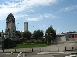 Gefallenendenkmal, Uhrturm und neues Empfangsgebäude