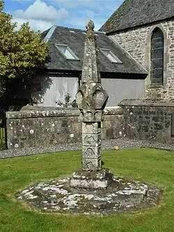 An der Nordwestseite schließt der kleine Privatfriedhof der Familie Cayzer an das Kirchengrundstück an. Inmitten des Friedhofs befindet sich eine Sonnenuhr, die als Denkmal der höchsten schottischen Denkmalkategorie A klassifiziert ist. Das rund 2,4 m hohe Sandsteinbauwerk stammt aus dem 17. Jahrhundert und stand ursprünglich in den Gärten von Gartmore House. Erst in den 1960er Jahren wurde es an seinen heutigen Standort versetzt. Es handelt sich um eine von nur 25 obeliskförmigen Sonnenuhren in Schottland. Sie ruht auf einem quadratischen Postament mit oktogonaler Basis. Der Schaft weist einen quadratischen Grundriss auf. Einzigartig in Schottland ist sein oktogonaler Kragen. In jeder der vier Seiten des Obelisken sind halbkugelförmige Aussparungen in Pentagonen zu finden. Insgesamt weist die Sonnenuhr 56 Zifferblätter auf. Sie zählt damit zu den frühen Exemplaren einer Sonnenuhr mit mehreren Zifferblättern in Schottland und zeigt deutsche und französische Einflüsse.[2]