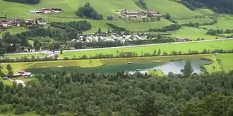 | Gasteiner Badesee vom Gasteiner Höhenweg aus gesehen | ||