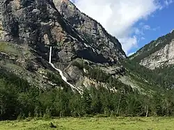 An der Südwand des Gasterntales tritt bei warmer Witterung der Geltenbach mitten aus einer rund 300 Meter hohen Felswand. Die Gesamtlänge der Geltenbachhöhle beträgt rund 1350 Meter.[1]