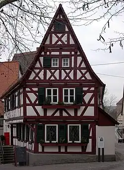 Vor dem Haus in der Heilbronner Straße wurden bei Kanalisationsarbeiten Mauerfundamente entdeckt. Dabei wurden auch Keramiken und ein Sandsteinmörser aus dem späten Mittelalter gefunden. Die Fundamente sind wohl die Reste eines zerstörten Kellers. Dies könnte darauf hindeuten, dass dieser Straßenabschnitt erst beim Bau der Neckarbrücke 1474 angelegt wurde.[1]