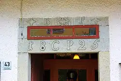 Im Schlussstein des Türstocks am Haupteingang des historischen Gasthofes ist außerdem die markante Inschrift „BP 18CP25“ zu finden. Die entsprechende Deutung dazu ist allerdings nicht genau geklärt beziehungsweise belegt. Vermutet wird hier, dass im Jahre 1825 die damaligen Besitzer Caspar Blöchl und Barbara, eine Kreuzberger Eignerstochter, den Gasthof um- oder neubauten.[2][4]