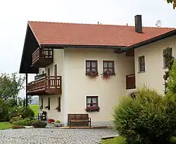 Das im Jahre 1651 erstmals erwähnte Gebäude liegt am historischen Handelsweg „Goldener Steig“ und befindet sich seit 1978 unter Denkmalschutz. Ebenfalls unter Denkmalschutz steht eine dazugehörige Kapelle aus dem Jahre 1861, welche aus einem einzigen Granitblock besteht.[1]