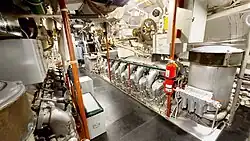 Es gab zwei Dieselmaschinenräume und einen E-Maschinenraum an Bord. Der Hauptantrieb der Gato-Klasse bestand aus vier Dieselgeneratoren, die entweder von der Cleveland Diesel Engine Division (einem Subunternehmen von General Motors) oder von Fairbanks Morse stammten (wobei dies die Boote mit den Kennungen SS-228 bis SS-239 und SS-275 bis SS-284 betraf), und vier Elektromotoren von der Elliott Company, von General Electric oder von Allis-Chalmers. In Überwasserfahrt versorgten die Dieselmotoren das Boot und die beiden Elektromotoren mit Strom. Unterwasser standen dafür zwei Batterieblöcke mit je 126 Zellen zur Verfügung, die in Überwasserfahrt von den Dieselgeneratoren aufgeladen wurden. Auf die zwei Propeller wirkten rund 5.600 PS (Dieselmaschinen) oder 2.740 PS (E-Motoren). Damit erreichten die Einheiten eine Höchstgeschwindigkeit von 20,25 Knoten (ca. 37,5 km/h) an der Wasseroberfläche und 8,75 Knoten (rund 16 km/h) auf Tauchfahrt. Die Reichweite an der Oberfläche und mit einem maximalen Dieselvorrat von 472 ts[1] betrug bei zehn Knoten etwa 11.800 Seemeilen[1], getaucht konnten die Boote bei zwei Knoten ungefähr 48 Stunden agieren. Die reguläre Patrouilleneinsatzzeit lag bei 75 Tagen.