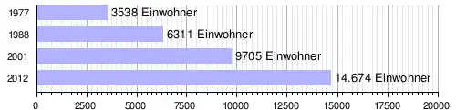Im Hauptort lebten bei der Volkszählung 2012 14.674 Einwohner in 2022 Haushalten,[1] bei der Volkszählung 2001 9705 in 1347 Haushalten[13] und bei der Volkszählung 1988 6311 in 1062 Haushalten.[14] Bei der Volkszählung 1977 waren es 3538 Einwohner.[15]