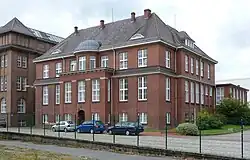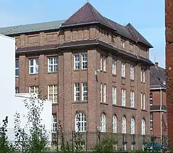- Haus 1 und 2 von vor 1889 als Toranlage und 2-gesch. Pförtnerhaus als Arkadenhaus mit Satteldach; nach 2009 Beratungsstelle der AWO und Sitz des Stadtteilmanagements