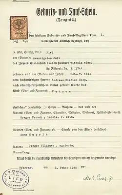 Beispiele einiger Urkunden bzw. Auszüge aus Geburtsregistern