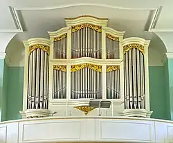 Der jetzige Neubau stammt aus dem Jahr 1974 von der Firma Eule aus Bautzen mit 29 Registern auf zwei Manualen und Pedal. Sie hat folgende Disposition:[3]
