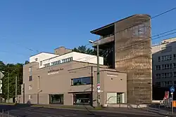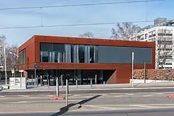 Das Dokumentationszentrum im ehemaligen Gemeindezentrum der Versöhnungsgemeinde liegt auf der anderen Seite der Bernauer Straße. Dort befinden sich Seminarräume und Büros der Versöhnungsgemeinde und der Stiftung Berliner Mauer. Die Dauerausstellung des Dokumentationszentrums 1961│1989. Die Berliner Mauer kontextualisiert die Geschichte der Berliner Mauer und bietet die historischen Hintergründe der Teilungsgeschichte, des Kalten Krieges und des Mauerbaus bis hin zum Mauerfall und zur Vereinigung der beiden deutschen Staaten.[6] Teil des Gebäudes ist auch ein fünfgeschossiger Beobachtungsturm, von dem das Teilstück der Grenzanlagen betrachtet werden kann.