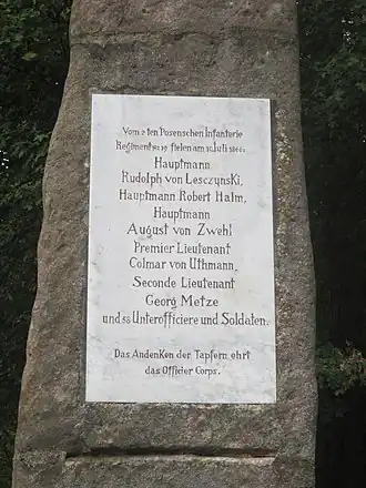 Das Denkmal wurde in dem von Schriftsteller Theodor Fontane verfassten Bericht über den Deutschen Krieg erwähnt, allerdings ohne den ausführenden Künstler zu nennen.