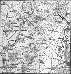 Zur Entlastung der schwer ringenden Infanterie attackierten schließlich noch zwei österreichische Kavallerie-Divisionen im Gefecht bei Stresetitz und bei Rosberitz-Langenhof, hier standen 39,5 österreichische etwa 31 preußischen Schwadronen gegenüber.