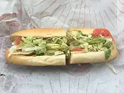 Der amerikanische Geflügelsalat (chicken salad) wird aus Scheibchen von gekochtem oder gebratenem Geflügelfleisch und Obst (wie Ananas, Äpfeln, Bananen, Pfirsichen, Orangen) und Walnusskerne zusammengesetzt, mit Salz, Pfeffer, Zitrone gewürzt sowie mit Öl und Chilisauce mariniert.[1] In den USA begannen Immigranten aus Deutschland ab 1910 in ihren Delikatessläden auch chicken salad sandwiches zu verkaufen. Später wurden sogenannte „mock chicken salads“ verkauft, hierbei bedeutet mock, dass ein Lebensmittel vortäuscht wie ein anderes zu schmecken: im Jahr 1923 „mock chicken salads“ aus gewürfeltem Schweinefleisch, 1931 aus Thunfisch und 1956 aus Kalbfleisch.[4]
