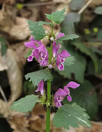 - ↑ Lamium maculatum im Germplasm Resources Information Network (GRIN), USDA, ARS, National Genetic Resources Program. National Germplasm Resources Laboratory, Beltsville, Maryland.