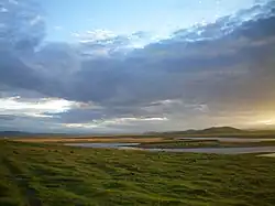 Der Gelbe Fluss, auch Huang He (chinesisch 黃河 / 黄河, Pinyin Huáng Hé, W.-G. Huang Ho, , veraltet nach Post: Hwang Ho, mong. Hatan Gol, kurz: 河, Hé)[1] genannt, ist ein Strom im Nordosten der Volksrepublik China. Er ist der zweitlängste Fluss Chinas und der achtlängste einzelne Fluss der Erde. Seine Länge wird je nach Messverfahren unterschiedlich angegeben: 4845 Kilometer ist die geläufigste Angabe; 5464 Kilometer die längste.[2] Sein Einzugsgebiet umfasst 752.443 Quadratkilometer.[2]