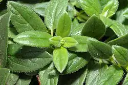 Die gegenständigen Laubblätter sind in Blattstiel und -spreite gegliedert. Die einfache Blattspreite ist elliptisch-eiförmig, ganzrandig und bewimpert. Die lanzettlichen Nebenblätter sind länger als der Blattstiel.