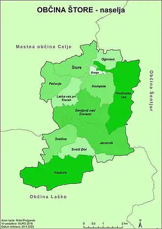 - ↑ Siedlungen in Štore (Savinjska, Slowenien) - Einwohnerzahlen, Grafiken, Karte, Lage, Wetter und Web-Informationen. Abgerufen am 1. August 2023.