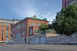 Verwaltungsgebäude im nordwestlichen Teil mit Kolonnadengang -