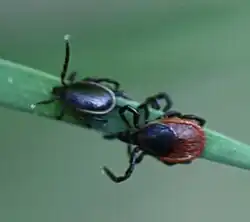 13. a b c d S.E. Randolph (2004): Tick ecology: processes and patterns behind the epidemiological risk posed by ixodid ticks as vectors. Parasitology 129: S37–S65. doi:10.1017/S0031182004004925