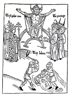 - ↑ Martin Luther: An den christlichen Adel deutscher Nation von des christlichen Standes Besserung. In: Martin Luther, Deutsch-Deutsche Studienausgabe. Band 3: Christ und Welt. EVA, Leipzig 2016, S. 51. Vgl. Weimarer Ausgabe der Schriften Luthers, Band 6, S. 428: Da her es kummen ist / das man sagt zum Bapst vnd den seinen Tu ora. Du solt betten / zum keyszer vnd den seinen Tu protege. Du solt schutzen / zu dem gemeynen man / Tu labora. Du solt erbeyten.