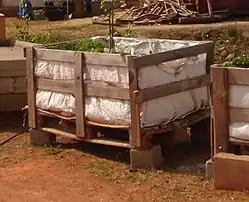 • Sehr oft werden mobile Gemeinschaftsgärten auf kontaminierte Böden angelegt, weil dieses Brachland erst durch eine aufwendige Sanierung als Bauland genutzt werden kann. Charakteristisch an dieser Situation ist, dass oft der Boden zunächst mit einer unbedenklichen Schutzschicht überzogen werden muss, gegebenenfalls auch mit einer Folie als Trennschicht, um bei der Sanierung nicht die Entsorgungsmenge zu erhöhen. Das Pflanzen in Paletten ist hier auch erforderlich, damit das Wurzelwerk nicht mit dem kontaminierten Boden in Berührung kommt.
