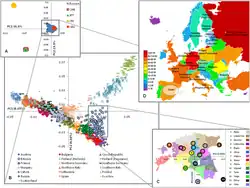 Autosomale Struktur in Europa, basierend auf einer PCA von SNPs