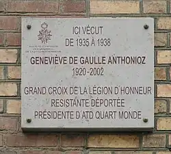 Geneviève de Gaulle-Anthonioz (* 25. Oktober 1920 in Saint-Jean-de-Valériscle, Département Gard; † 14. Februar 2002 in Paris) war eine Nichte von Charles de Gaulle, Mitglied der Résistance und Präsidentin der Menschenrechtsbewegung ATD Vierte Welt. Für ihr öffentliches Wirken erhielt sie als erste Frau das Großkreuz der Ehrenlegion.