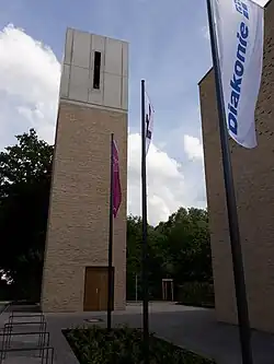 - ↑ Richtfest am Rohbau der evangelischen Genezareth-Kirche in Aachen. In: Evangelischer Kirchenkreis Aachen. 1. September 2017, abgerufen am 3. Dezember 2018.