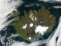 Aufgrund der stetigen vulkanischen Aktivität infolge der Spreizungstendenzen des Mittelatlantischen Rückens wächst Island um ca. 2 cm pro Jahr in Ost-West-Richtung.[1] Das Wachstum in westlicher Richtung ist jedoch deutlich stärker als das nach Osten gerichtete.