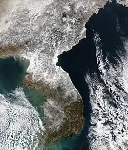 Das Klima Nordkoreas ist gemäßigt, und der Großteil der Regenfälle findet im Sommer statt. Unter in Nordkorea auftretenden Naturkatastrophen fallen Dürren im späten Frühling, die häufig von schweren Überschwemmungen gefolgt werden, sowie Taifune, die im Frühherbst auftreten.
