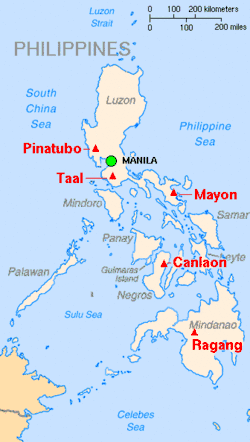 Der gesamte philippinische Archipel ist ein stark von Erdbeben gefährdetes Gebiet. Viele Vulkane des Landes sind aktiv, wie der schwere Ausbruch des Pinatubo auf Luzon im Jahr 1991 oder die jüngste Eruption des Berges Mayon nahe Legazpi City anschaulich zeigt.