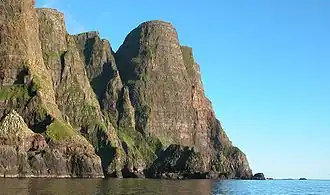 Die Steilküsten bzw. Kliffs der Färöer zählen zu den höchsten der Welt. Häufig wird das Kap Enniberg (754 Meter) im äußersten Norden des Archipels auf Viðoy als das höchste Seekliff der Welt angesehen, andere sind bescheidener und nennen es das höchste Europas. Hierbei gilt es zu überlegen, wovon man redet: einem steilen Hang oder einer senkrechten Wand. Enniberg ist senkrecht. Ist senkrecht nicht das Kriterium, dann ist der Kunoyarnakkur (819 m.o.h.) an der Nordspitze Kunoys wiederum eines der höchsten Kaps der Welt. Lotrechte Wände mit mehreren hundert Metern Höhe finden sich meist an den West- und Nordküsten der Inseln. Sie bilden die berühmten ‚Vogelberge‘ (Ein- und Mehrzahl: fuglabjørg oder fuglaberg) als Nistplätze für die färöische Seevogelwelt. Im Färöischen wird zwischen fjall und berg unterschieden. Ein berg ist immer eine Steilküste.