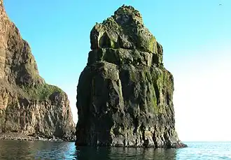 Daneben gibt es vor der Küste Holme. Ein Holm (hólmur) ist eine kleine Insel (oyggj), die aber nicht zu den 18 Inseln der Färöer gezählt wird. Und schließlich gibt es noch kleine flache Schären, die nicht von Gras bewachsen sind, sondern z. B. den Kegelrobben als Refugium dienen.