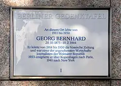 Georg Bernhard (* 20. Oktober 1875 in Berlin; † 10. Februar 1944 in New York) war ein linksliberaler deutscher Publizist jüdischer Abstammung, der sich schon früh gegen den Nationalsozialismus engagierte. Er musste im Jahr 1933 emigrieren und war der Gründer einer bedeutenden Exilzeitung.