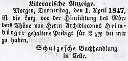 - Cellesche Anzeigen vom 17. und 24. März 1847