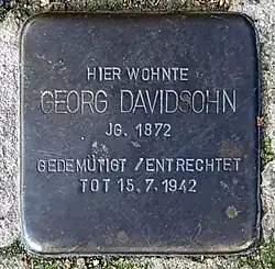 Am 17. Oktober 2022 wurde vor seinem ehemaligen Wohnort, Berlin-Mitte, Jacobystraße ggü. 5, ein Stolperstein verlegt.