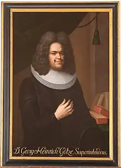 - ↑ Gottfried Christian Götze: Den vollendeten Tag des Lebens des Weyland Hochwürdigen , Hoch-Edlen, in GOtt Andächtigen / und Hochgelahrten Herrns / Hrn. George Heinrich Götzens, ... In: Beylagen der Actorum Ministerii. Band 11.. Lübeck 1728, S. 10–12.