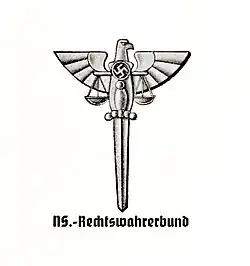 Der Bund Nationalsozialistischer Deutscher Juristen, ab 1936 in Nationalsozialistischer Rechtswahrerbund umbenannt, fungierte nicht nur als Berufsverband, sondern als zentrales Instrument zur ideologischen Steuerung des nationalsozialistischen Justizapparats. Unter der Leitung von Hans Frank übernahm der Bund die Schulung und parteipolitische Ausrichtung aller Juristen und spielte damit eine wesentliche Rolle bei der ideologischen Gleichschaltung der Justiz.[2]
