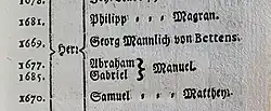 - ↑ Zesiger: Die Stube zum roten/guldinen Mittlen-Löüwen. 1908, S. 155; Sterchi: Georg Mannlich von Bettens. 1884, S. 525.