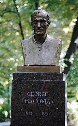 In der Zeitschrift Literatorul veröffentlichte er sein erstes Gedicht Și toate (Und alles) noch unter dem Namen George V. Von 1925 an lebte der kränkelnde und von Depression geplagte Dichter zeitweise in Bukarest. Mit 47 Jahren heiratete er die Lehrerin Agatha Grigorescu.[1] Mit ihr hatte er einen Sohn. Im Jahr 1933 zog die Familie endgültig nach Bukarest. Dort verstarb Bacovia im Jahr 1957. Die Universität George Bacovia Bacău in seiner Geburtsstadt trägt seinen Namen. In seinem Geburtshaus wurde eine Gedenkstätte eingerichtet.