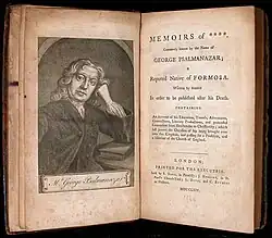 - ↑ a b Georg Stauth: Contextualizing a Vision: Psalmanaazaar, Formosa and Anthropology. In: Asian Journal of Social Science. Band 26, Nr. 2, 1998, ISSN 1568-4849, S. 85–101, doi:10.1163/030382498X00175 (brill.com [abgerufen am 24. September 2023]).