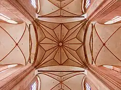 Erhaltene Kreuzrippengewölbe des Chors, rekonstruiertes Sterngewölbe der Vierung (Juli 2009) -