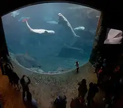 Es ist eines von zwei Aquarien in den Vereinigten Staaten, das Große Hammerhaie ausstellt; das zweite ist das Adventure Aquarium in New Jersey.[12] Das Aquarium beherbergte fünf drei Meter große Belugawale: Zwei männliche Tiere mit Namen Nico und Gasper wurden von einem Freizeitpark in Mexiko-Stadt gerettet, wo sie unter einer Achterbahn gehalten wurden.